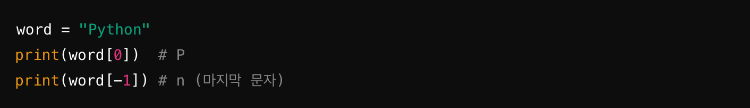 🔹 특정 문자 가져오기 (인덱싱)